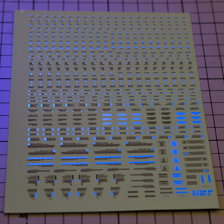 新款進口螢光油墨水貼在紫外光下呈現發光效果,有非常高的亮度;