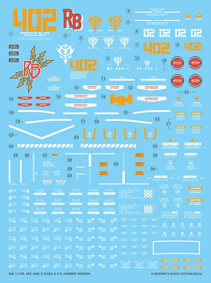 G-Rework 水貼 - [MG] MS-06R-2 ZAKU2 2.0 [JOHNNY RIDDEN] (decal v2.0)