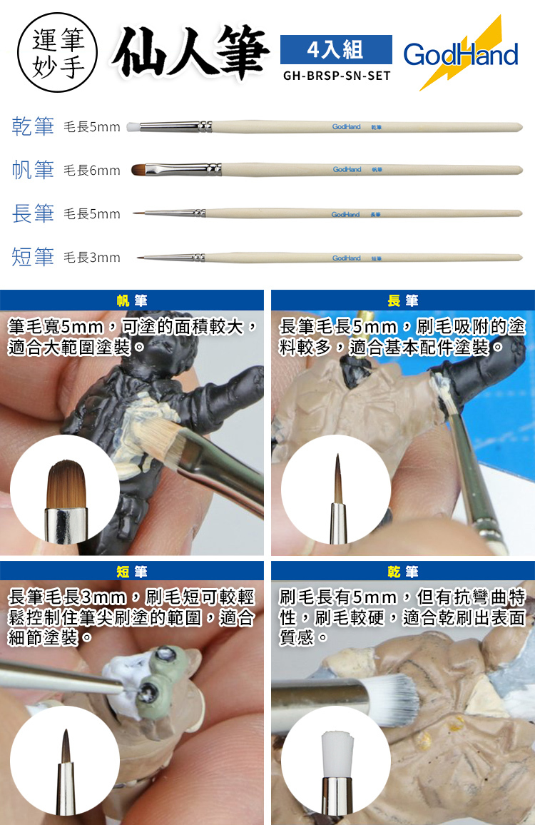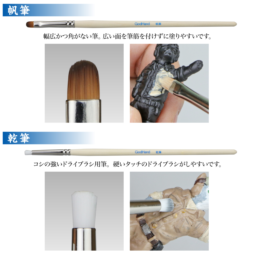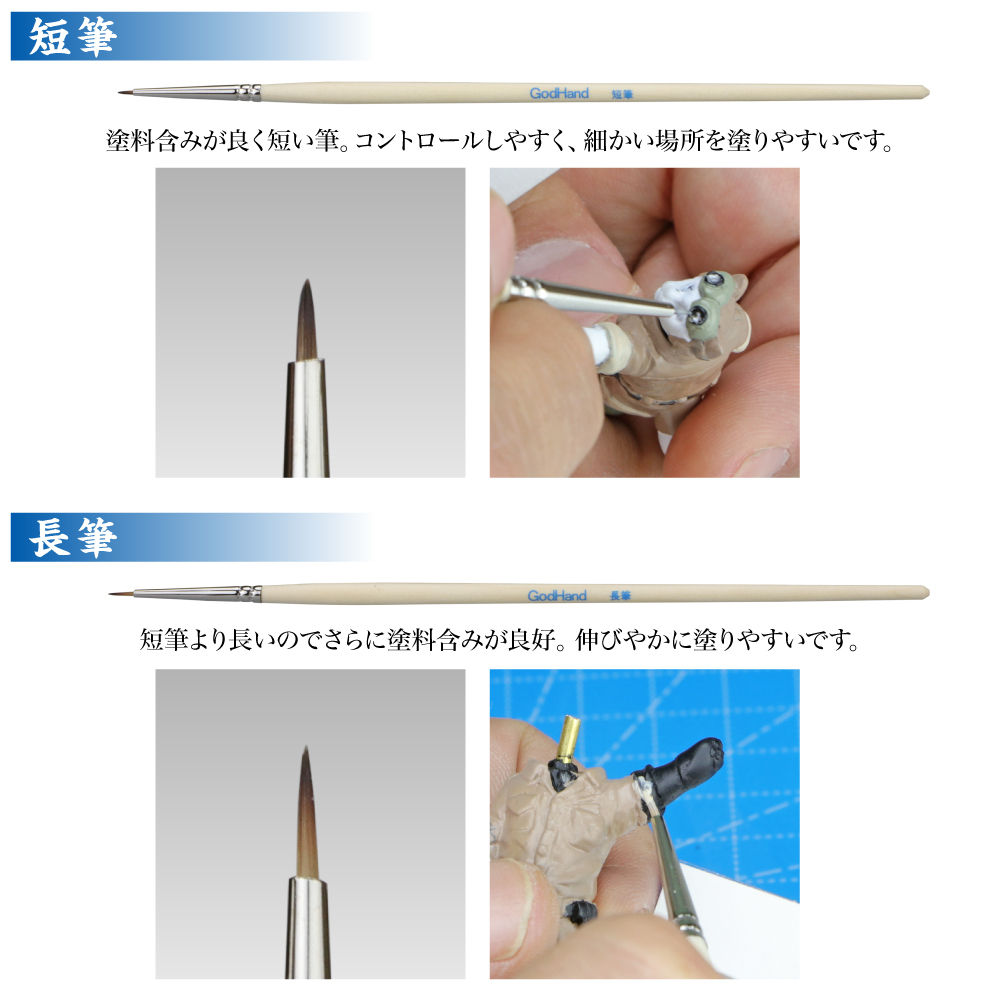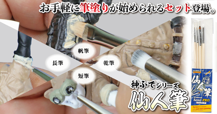 「仙人筆」は、基本的な塗装に使える独自の筆先形状