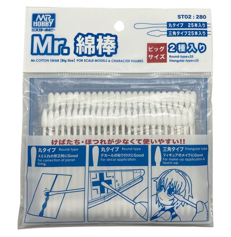 Mr. Hobby ST02 大棉棒 (三角+圓頭,各25入)